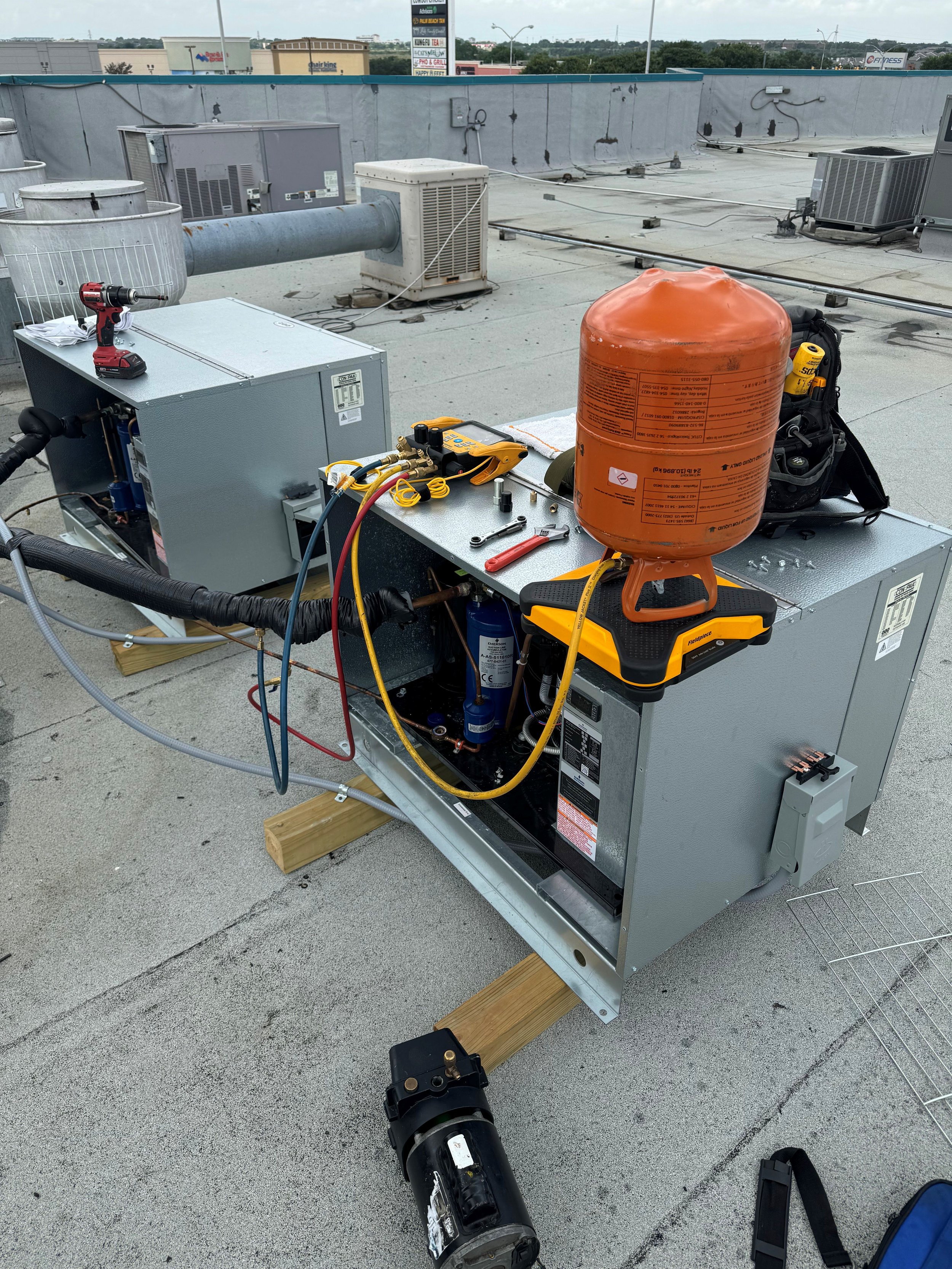 Commercial & Light Industrial Split Systems: Compressor and condenser repairs, evaporator coil service, refrigerant leak detection and repair, line set replacement, and full-system retrofits.